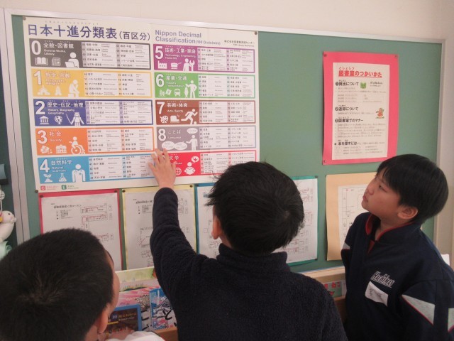 以前学習した図書館の日本十進分類法を元にして本探しをする場面も見られました。