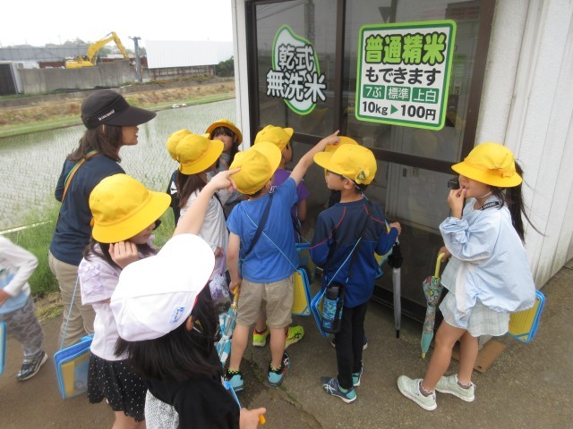 学校を出発して、しばらくすると、道中に精米所があり、子供たちはどんなところだろうと中を観察していました。