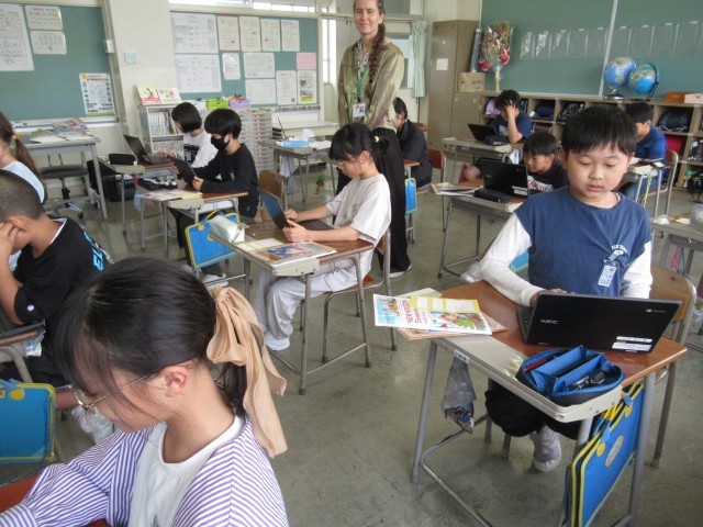 スピーチテストの後は、ALTが作ったクイズゲームをしました。クロームブックを使って、一人一人が答えます。