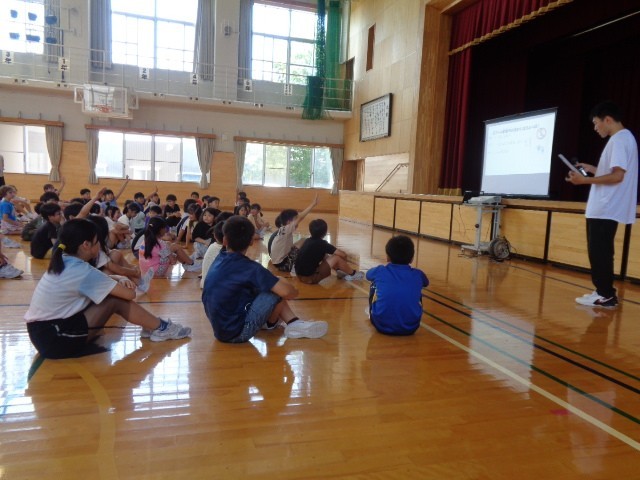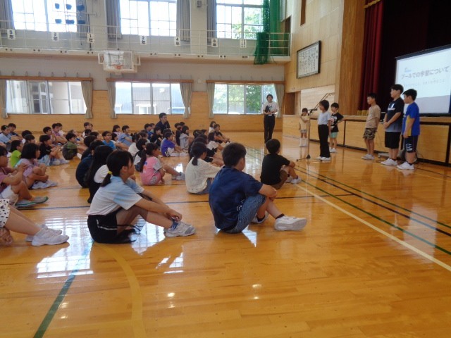 はちまんタイムでは、プール開きの式を行いました。各学年の代表者が、水泳学習の目当てを発表しました。