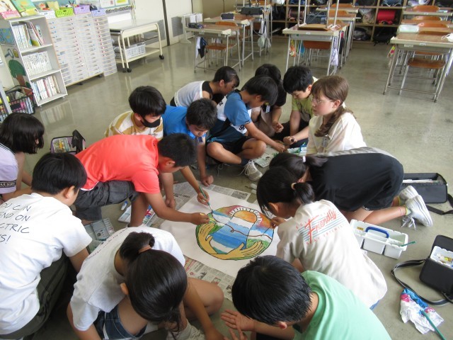 そしてデザインが決まり、今回は全員で色塗りをしました。