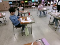 前時に、色々な窓の形をカッターで切り開きました。今日は、切った窓の中の様子を、画...
