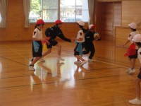 4年生と取り組んだリズムダンスも終わり、今日は3年生だけの体育。ラグビーボールと...