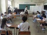 今日は、なかよし班グループ3班の人が担当し、あいさつおみくじを持って教室を回って...
