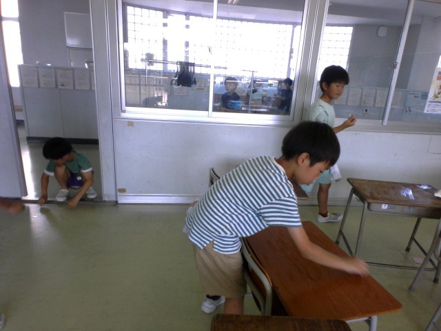 2年生 教室にありがとう 公開日 2025/07/24 更新日 2025/07/24 2年生 明日から夏休み。終業式を迎えた今日、教室の掃除をしました。ロッカーや学習用具の整頓と点検をした後、4か月間お世話になった机や教室の床の汚れを落としました。また、下足箱の砂を落とし、雑巾で拭きました。2学期まで教室とはしばらくお別れです。 2年生