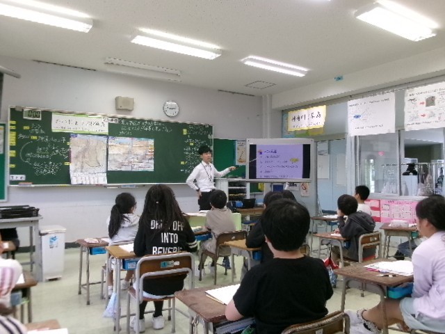 市役所河川整備課の方をお招きし、ハザードマップの見方や使い方について学びました。子どもたちは自分の家の場所を確認しながら、水害の際にどこが安全なのかを真剣に考えていました。授業の後には、「今日の話を家族としたい」「家族会議を開いてみたい」など、学びを生活に生かそうとする前向きな声が多く聞かれました。