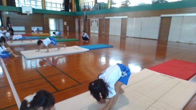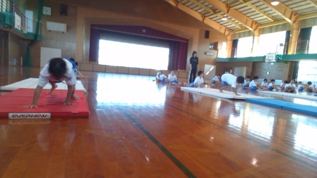 今日の体育では、くま、くも、かえるなど、いろいろな虫や動物の動きをしながら体いっぱい動かしました。