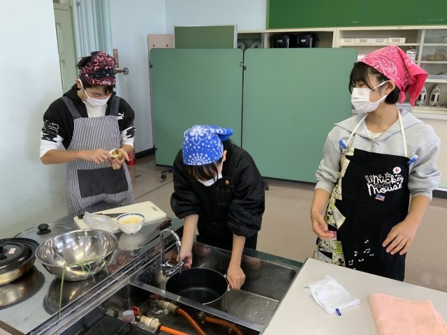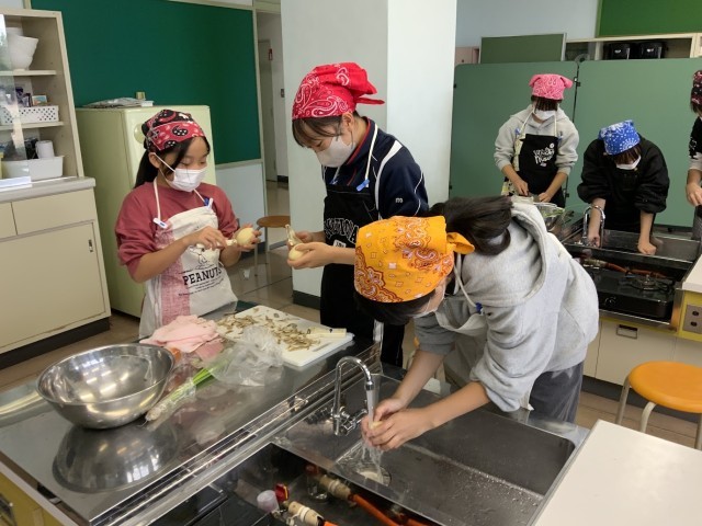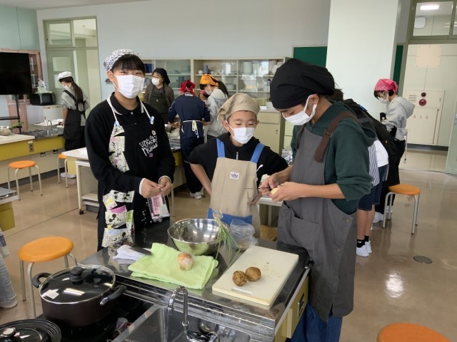 家庭科の時間に、じゃがいもを使った調理実習に取り組みました。子供たちは、安全に気を付けながら包丁やピーラーを使っていました。