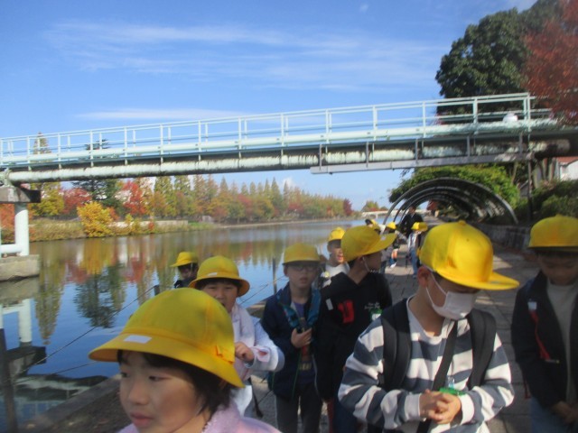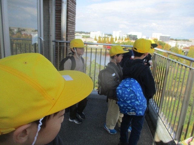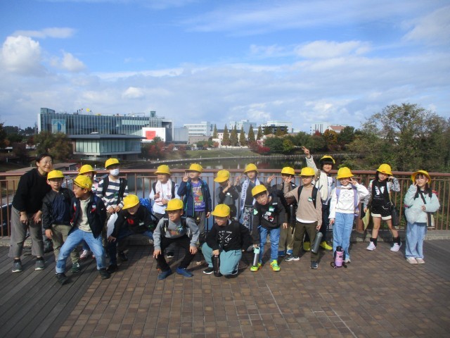 途中、どんぐりや落ち葉がたくさん落ちている公園に立ち寄り、その後富岩運河に沿ってハイキングをしました。水面に色付いた木々や青い空が映りとてもきれいな景色に歓声をあげていました。富岩運河の終点、環水公園では、高い展望塔からも秋の風景を楽しみました。