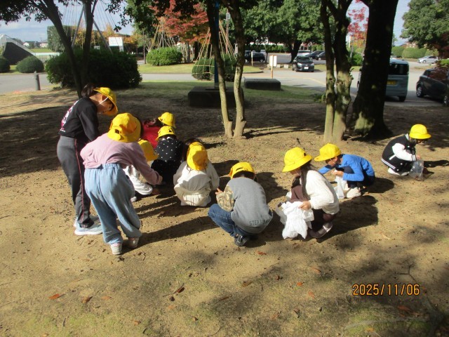 公園では、袋いっぱいにどんぐりを拾ってとても嬉しそうにしていました。