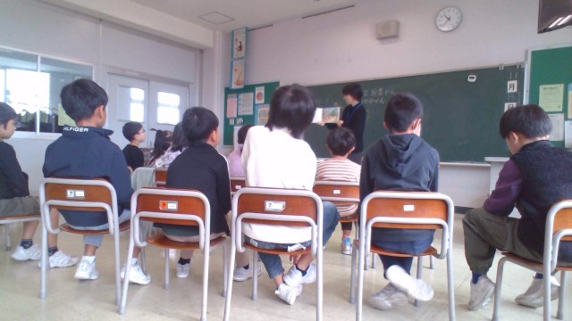 富山市立図書館四方分館の方が2名、学級を訪問してくださいました。今回のテーマは「お手紙」。手紙に関する物語や科学読み物を紹介していただきました。また、ブックトークでは「靴下の穴」の楽しいお話を聞きながら、創造を膨らませていました。今日紹介していただいた6冊の本は1か月間お借りしたので、いつでも教室で読むことができます。
