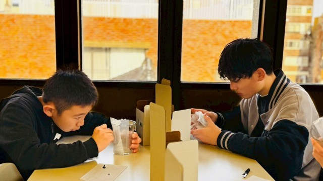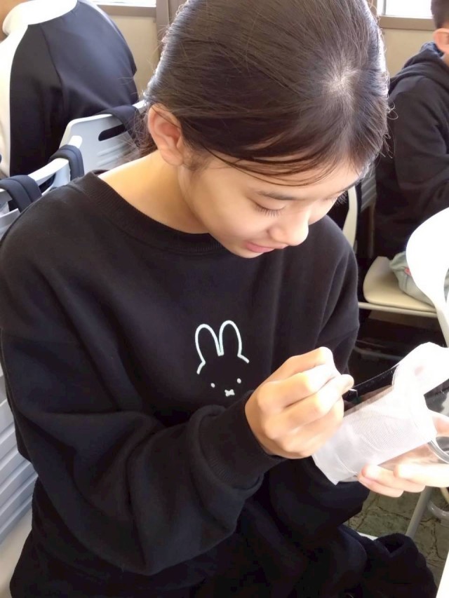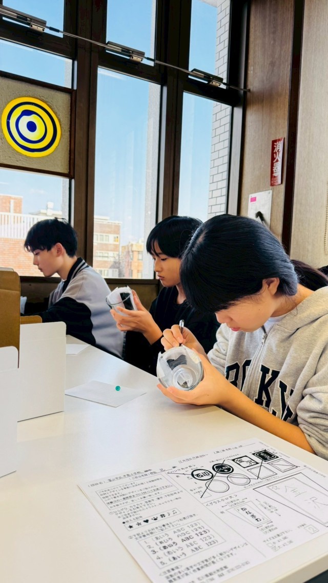石川県観光物産館へ移動し、卒業制作に取り組みました。ガラスのコップに「砂彫り」をしました。