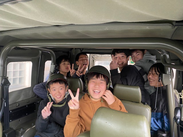 キャリア教育 ~自衛隊の方から話を聞く~(その2) 公開日 2025/12/15 更新日 2025/12/05 6年生 講義の後、実際に外に出て、自衛隊車両に乗せていただきました。普段乗ることのできない車両に乗せてもらえる、とても貴重な経験となりました。子供たちが「社会の仕事」について学ぶことのできる有意義な時間でした。 6年生