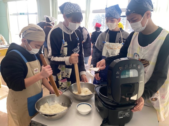 6年生 調理実習「おはぎづくり」 公開日 2025/12/25 更新日 2025/12/19 6年生 調理実習で「おはぎ」を作りました。もち米を炊いた後、しっかりとこねて、おいしいおはぎを完成させました。ぜひ、冬休み中も、ご家庭で料理を楽しんでもらいたいと思います。 6年生