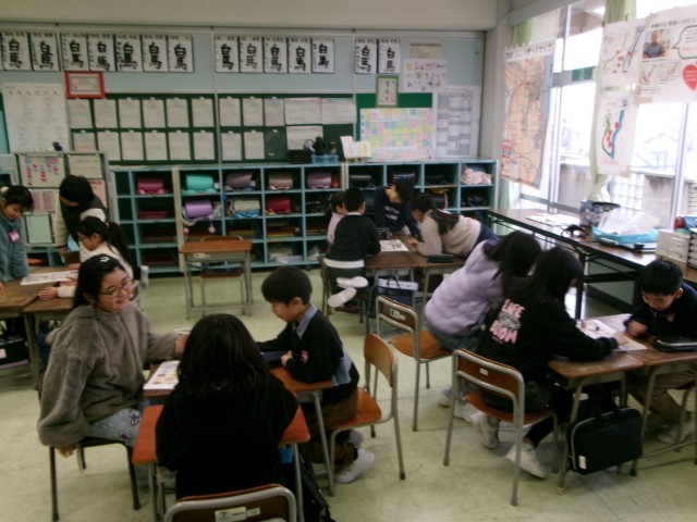 3、4、5、6年生は体育館で書き初め大会を行い、一文字一文字に思いを込めて取り組みました。冬休みの練習をしてきた成果が表れていました。また、クラスではすごろくをしました。声をかけ合いながら楽しく交流する姿が見られ、学級の温かい雰囲気づくりにつながりました。 新学期も、友達と学び合いながら成長していく子どもたちの姿を大切にしていきます。