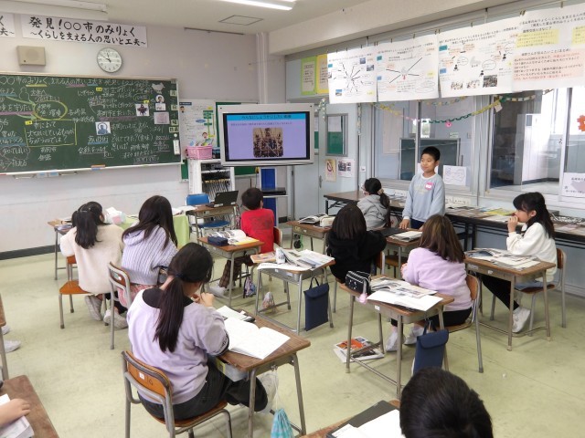社会科「発見!〇〇市のみりょく」の単元もいよいよ大詰めを迎え、これまでの調べ学習の結果を共有する「まとめ報告会」を行いました。