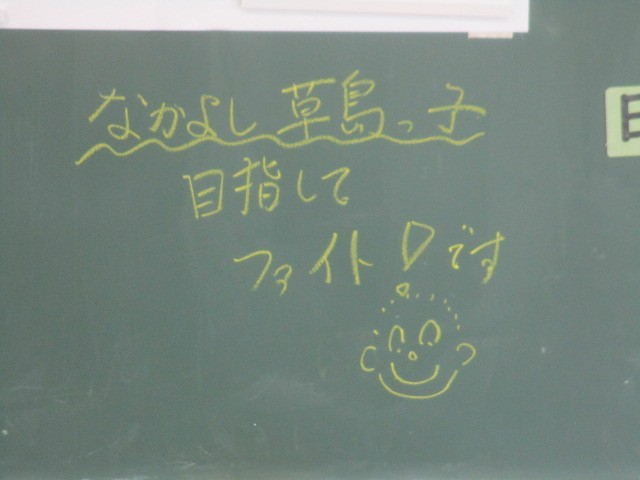 全校放送にて、児童会スローガン「なかよし草島っ子~明日も行きたくなる学校~」に込めた思いを全員で伝えました。教室に戻ると、黒板には校長先生からの温かいメッセージが。全校のリーダーとしての決意を新たにする、素敵な時間となりました。