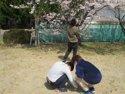 かがやき級 春となかよし 公開日 2022/04/07 更新日 2022/04/07 かがやき級 今日はグラウンドに出かけて、桜の木をみたり、生き物の様子を観察したりしました。まだつぼみの桜もあって、「いつ咲くのかな?」とわくわくしていました。
