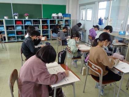 今日は国語と理科の学力調査に取り組みました。6年生になると問題量も増えましたが、最後までがんばって解こうとしている姿が見られました。