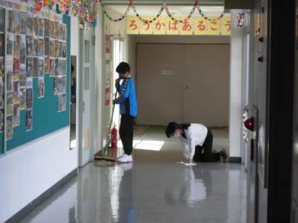 まだ縦割り班が決まっていないので、各学年ごとに掃除をしています。協力しながら、学校をきれいにしようと丁寧に掃除に取り組んでいます。