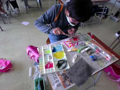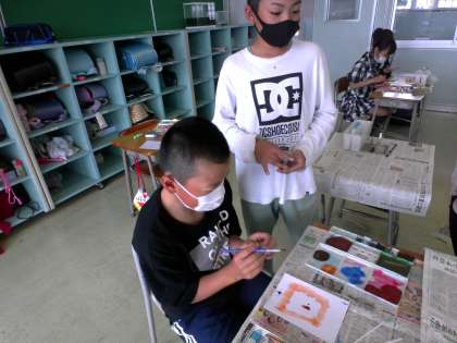 5年生 図画工作科「心のもよう」 公開日 2022/04/13 更新日 2022/04/13 5年生 子どもたちは図画工作科の学習を楽しんでいます。スパッタリングや吹き流し等、様々な表現方法を試しました。
