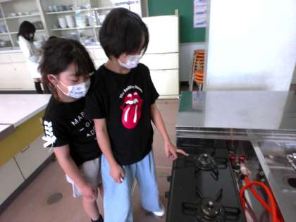 5年生になり、家庭科学習が始まりました。今日は家庭科室にはどこにどんなものがあるかを確認しました。家庭科が楽しみになっている様子です。