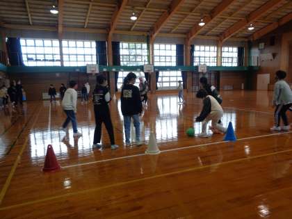 今日はマーク先生と今年初めての外国語でした。的当てとドッジボールを合わせたゲームで、当たった人は1〜20を英語で数えられたらゲームに戻ることができるルールです。授業の後半になるとすらすらと英語で言えるようになっていました。
