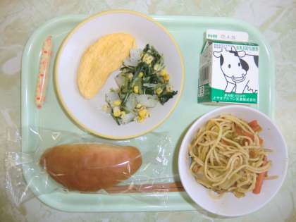 4月19日の給食 公開日 2022/04/19 更新日 2022/04/19 メール用カテゴリ 今日の給食は、 コッペパン 牛乳 オムレツ えごまドレッシングサラダ やきそば ぼうチーズ です。 今日もおいしくいただきました。