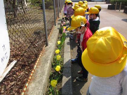 1年生 生活科の学習1 公開日 2022/04/21 更新日 2022/04/21 1年生 生活科「あそびにいこうよ」の学習で、春見付けをしました。学校にはいろいろな植物や生き物がいます。去年の一年生が、新しい一年生のために植えたチューリップも、きれいに花を咲かせていました。