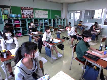 今年度初めての毛筆学習を行いました。始筆と終筆等、筆使いの基本を確認しました。
