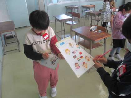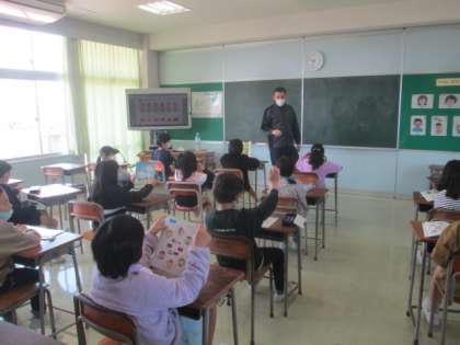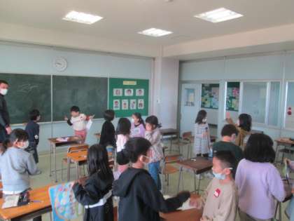 今日は外国語活動がありました。英語で挨拶をして、英語でじゃんけんをして楽しく学ぶことができました。