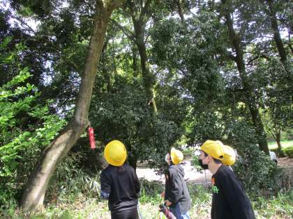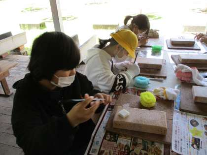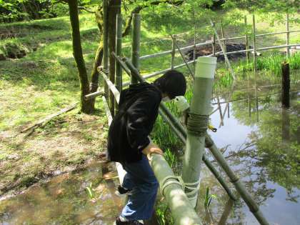 校外学習で、呉羽青少年自然の家に行ってきました。オリエンテーリングでは、春の自然いっぱいの森を散策しました。まが玉作りでは、やすりを使ってつるつるのまが玉を作ることができました。池遊びでは、ドキドキしながらも池ジャングルに挑戦することができました。