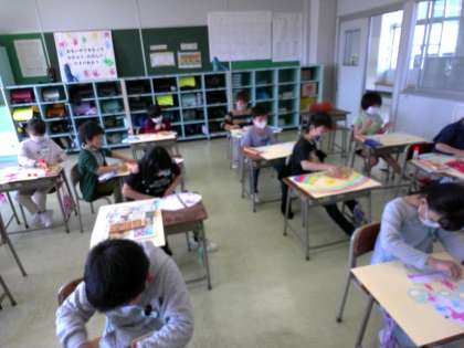 2年生 「ふしぎなたまご」 公開日 2022/04/28 更新日 2022/04/28 2年生 図画工作科で、子供たちの想像するたまごからうまれた世界を絵で表しました。音楽の世界や海の世界、さまざまな思いを表現しています。