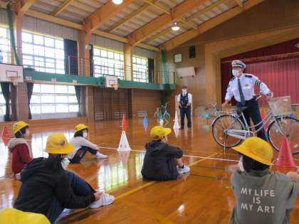 交通安全教室を行いました。交通ルールや自転車の乗り方について、警察署の方から丁寧に教えていただきました。自転車の実地訓練では、横断歩道や踏切等のコースを自分の目でしっかりと確認しながら巡りました。子供たちは交通安全の意識を高めることができました。
