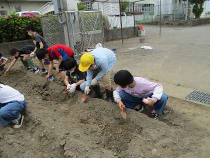 かがやき級 畑のうねづくり 公開日 2022/05/17 更新日 2022/05/17 かがやき級 生活単元学習「おいしい野菜を育てよう」では、野菜の苗を植えるために、うねづくりをしました。スコップを使って、肥料を丁寧に混ぜていました。