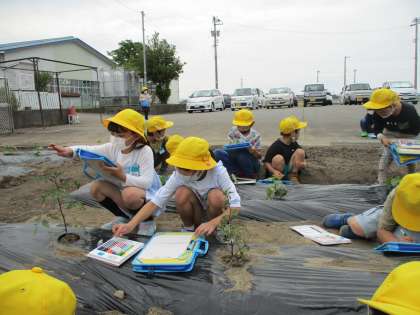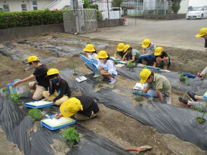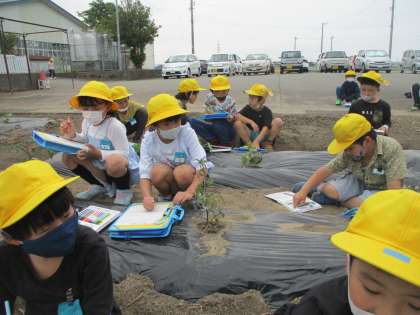 2年生 生活科「おおきくなあれわたしの野さい」 公開日 2022/05/17 更新日 2022/05/17 2年生 今日は生活科で育てている野菜の苗を観察しました。葉の大きさやくきの長さを自分の手と比べて測ったり、葉の手触りを確かめたりして分かったことを野菜日記に書きました。