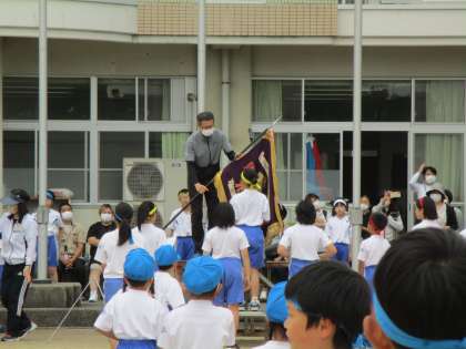 閉会式の様子です。代表の子供による成績発表が行われました。子供たちは、これまでの努力を思い出しながら聞いていました。