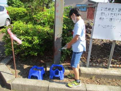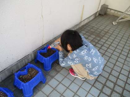 「早く大きくなってね」とそっと優しく水をあげていました。