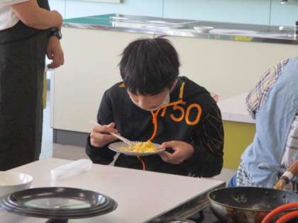 5年生は、家庭科の学習で「スクランブルエッグ」を作りました。