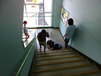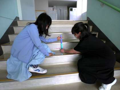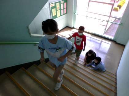 5年生 算数科 比例学習を利用してみよう 公開日 2022/05/25 更新日 2022/05/25 5年生 算数科では比例関係について学習を進めました。「階段1段の高さ」と「段数」が比例関係にあることを利用し、今日は草島小学校の1階の床から3階の床までの高さを求めました。約7mであることを求め、生活場面で利用できることが感じられたようです。