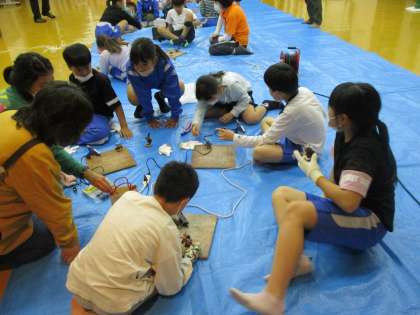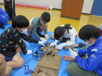宿泊学習 クラフト 公開日 2022/06/08 更新日 2022/06/08 4年生 クラフトでは、木や木の実を使った置き物を作りました。10種類近く用意された木の実の色や形、大きさをじっくりと見ながら、飾りを選んでいました。素材を組み合わせて自分だけの特別な置き物を作ることができました。