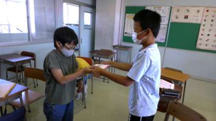 5年生 外国語科「Unit2 When is your birthday?」 公開日 2022/06/10 更新日 2022/06/10 5年生 今日は、学習の成果を確認しました。友達の誕生日を祝うバースデーカードを英語表現を用いて渡しました。