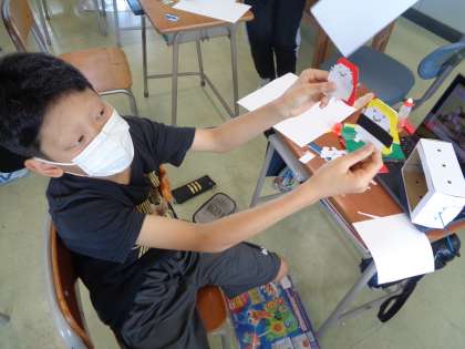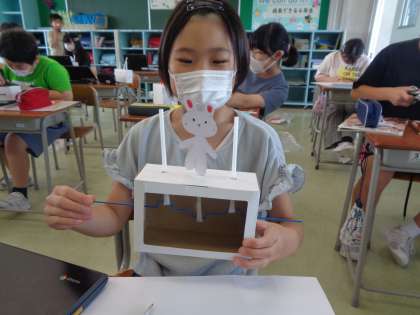 くるくるクランク 公開日 2022/06/10 更新日 2022/06/10 6年生 実際にクランクを回してみて、何の動きに見えてくるか想像しました。メリーゴーランドやアヒルボート等、個性的な発想がたくさん出てきました。完成が楽しみです。