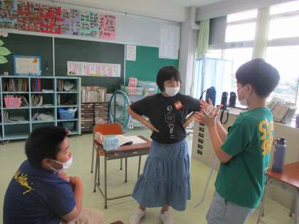 かがやき級 国語科「見立てる」 公開日 2022/06/10 更新日 2022/06/10 かがやき級 あやとりで作った形を見て、どんな形に見えるのか話し合い、名前を付けました。一つのあやとりの形でも、「川」や「虹」、「橋」に見えるなど、人によって見立てた物が違うことに気付くことができました。