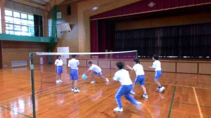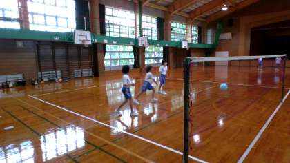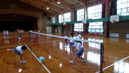 運動クラブは、自分たちで話し合って決めた活動計画をもとに運動に親しんでいます。今日は、雨天だったため体育館でソフトバレーボールを行いました。異学年の友達とも声をかけあって活動を進めています。