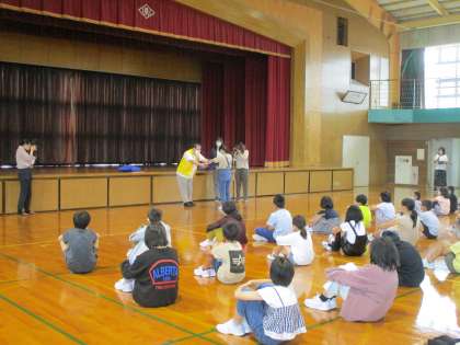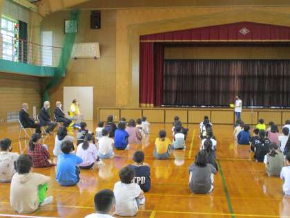 富山アラートライオンズクラブの方から、140着のライフジャケットをいただきました。児童の防災の意識が高まりました。