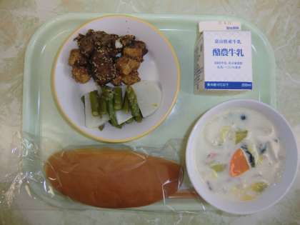 6月14日の給食 公開日 2022/06/14 更新日 2022/06/14 メール用カテゴリ 今日の給食は、 米粉コッペパン 牛乳 さかなとレバーのえごまだれからめ かぶのサラダ ちゅうかクリームスープ です。 今日もおいしくいただきました。