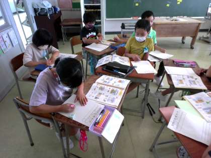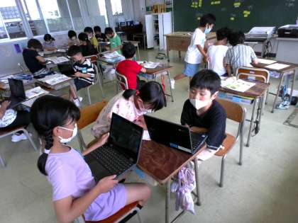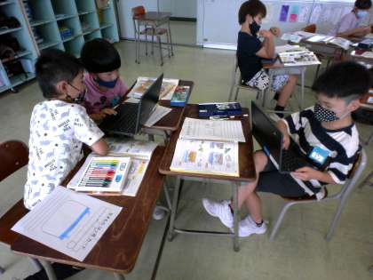 2年生 生活科「生きものをかおう」 公開日 2022/06/16 更新日 2022/06/16 2年生 前回までにグラウンドでいろいろな生き物を見つけた子供たちは、飼育できそうな生き物について話し合い、餌や住処について教科書やChromebookで調べる活動をしました。