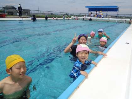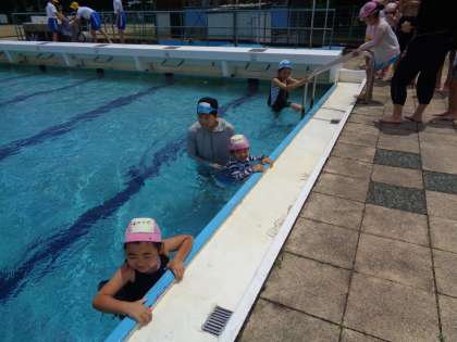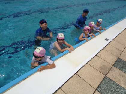 1年生と一緒に今年初のプールに入りました。お兄さん、お姉さんとして、シャワーの仕方やプールでの動き方などを優しく教えている姿が見られました。