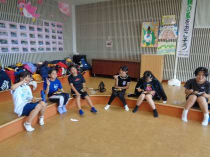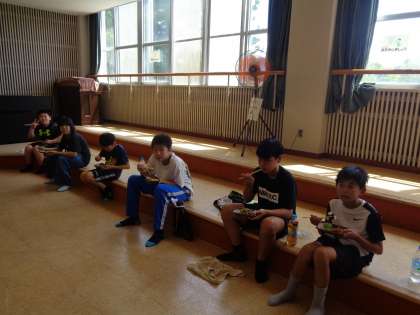 6年生宿泊学習「来拝山登山その3」 公開日 2022/07/01 更新日 2022/07/01 6年生 今回は、熱中症予防のため、全員で下山した後、お弁当を食べました。 みんなとてもお腹がすいていて、おいしそうに食べていました。